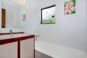 * Practical bathroom layout with a separate toilet for added convenience.
